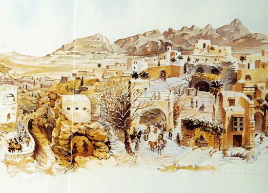 - Destaco en el dibujo la almazara que esta justo a la derecha del espolón de Masada, a la izquierda del dibujo, debajo de un gran árbol. Lo veremos con más detalle, pues es digno de imitación.